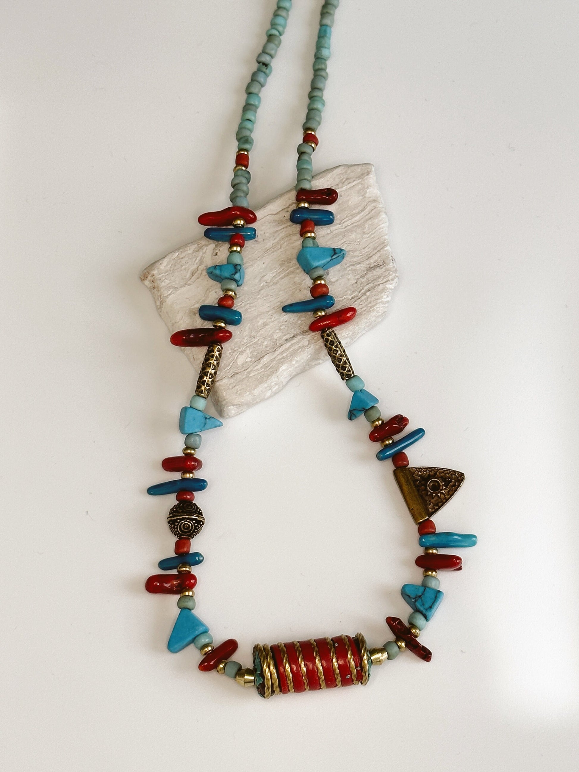 Coral Pendant | Boho Necklace | Tibetan Jewelry | Nepali Necklace | Gift for Women Ethnic Jewelry