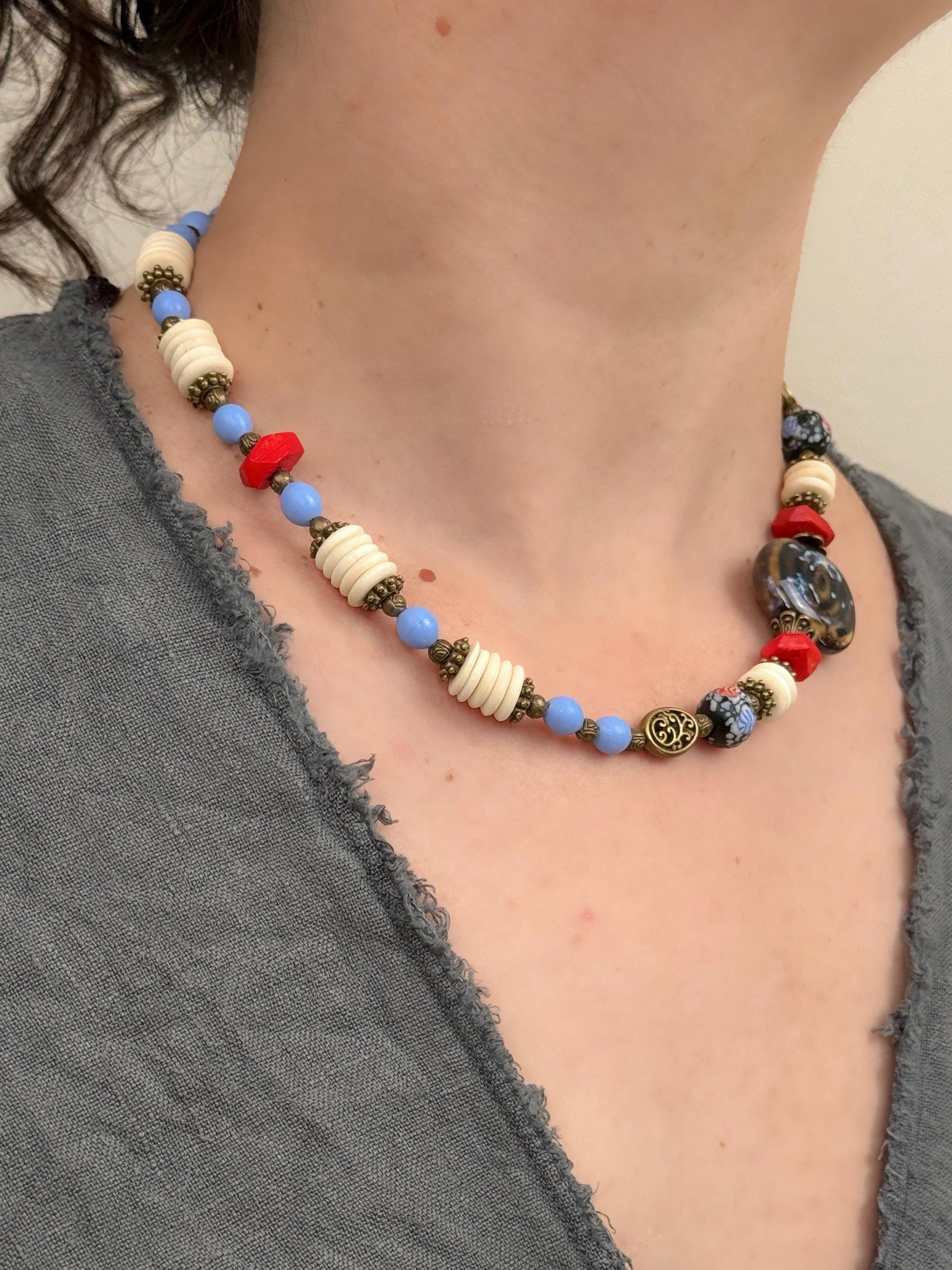 Its ethnicity and elegance comes from the traditional tribal ethnic design and boho minimalist string structure. It is designed and produced by local shaman artisans. Shamanism is known as a nature worship belief. Shamans bound their soul with nature. Our necklace is designed and is became alive with this bound.