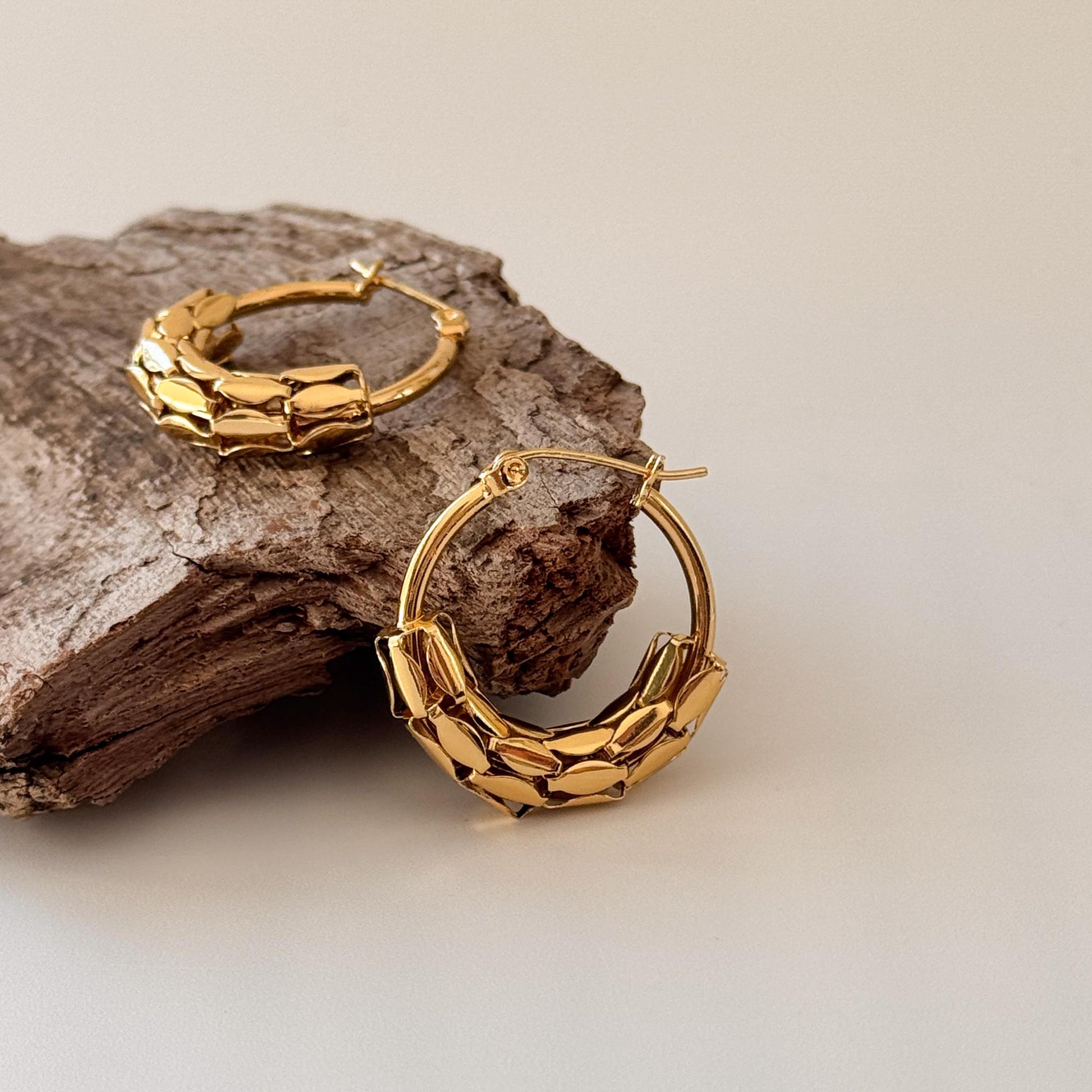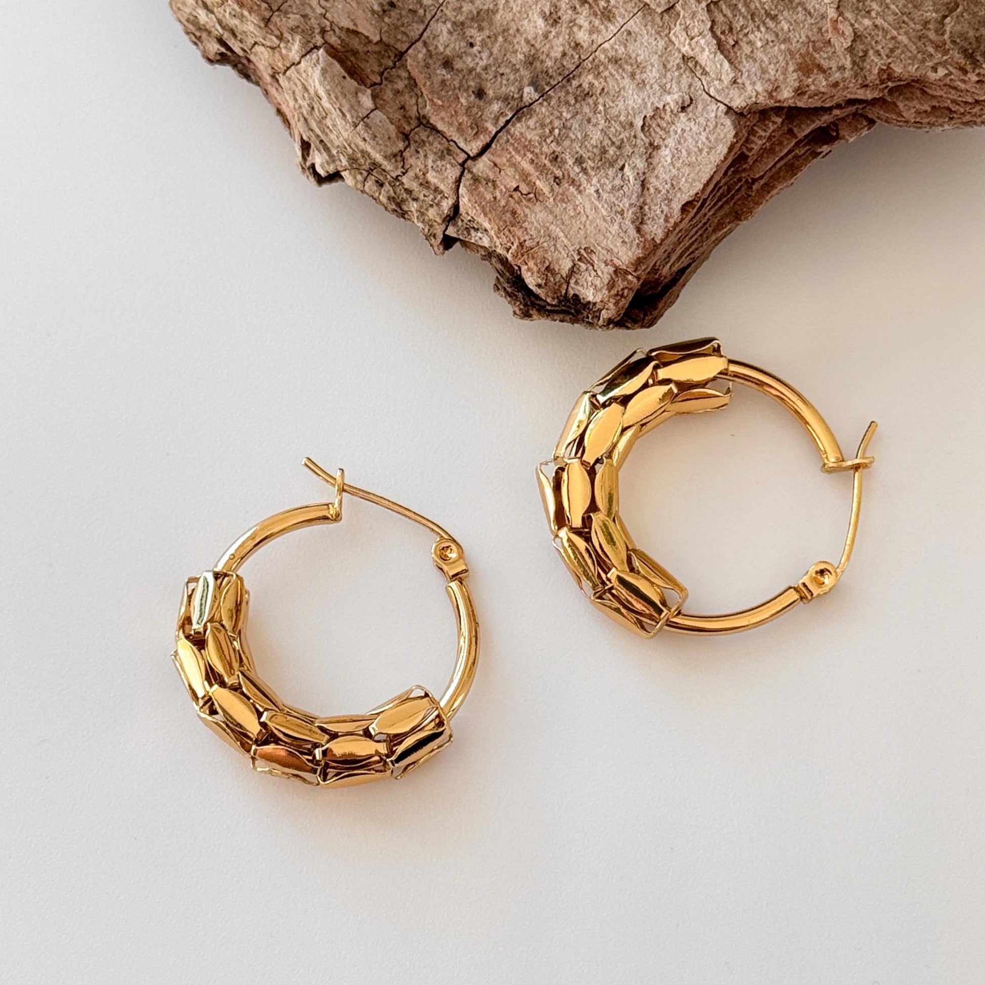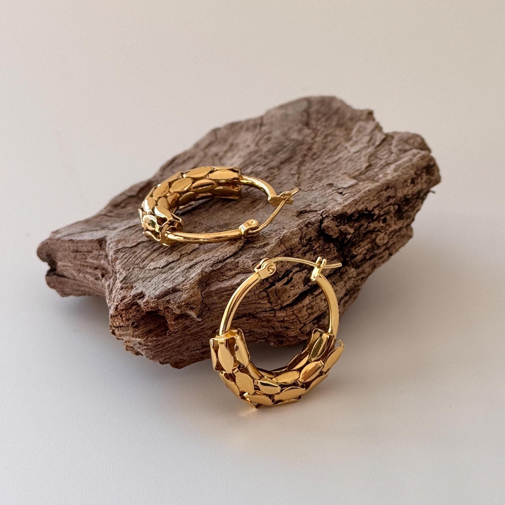 Crafted with quality gold plating over stainless steel, these hoops offer long-lasting shine and resistance to tarnishing, making them a reliable and stylish accessory for everyday wear.