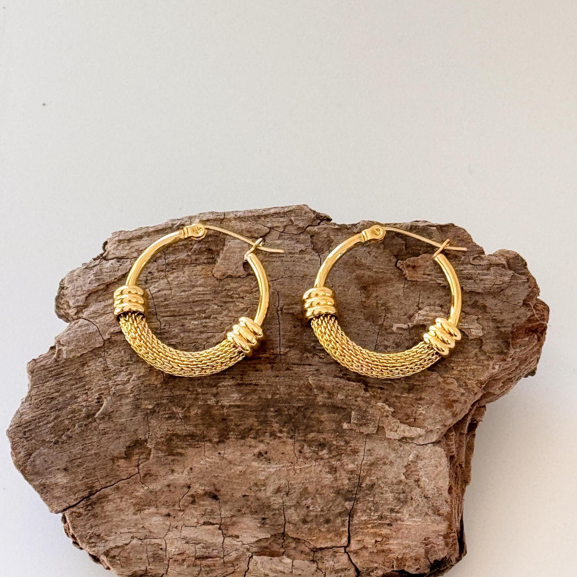 Crafted with quality gold plating over stainless steel, these hoops offer long-lasting shine and resistance to tarnishing, making them a reliable and stylish accessory for everyday wear.