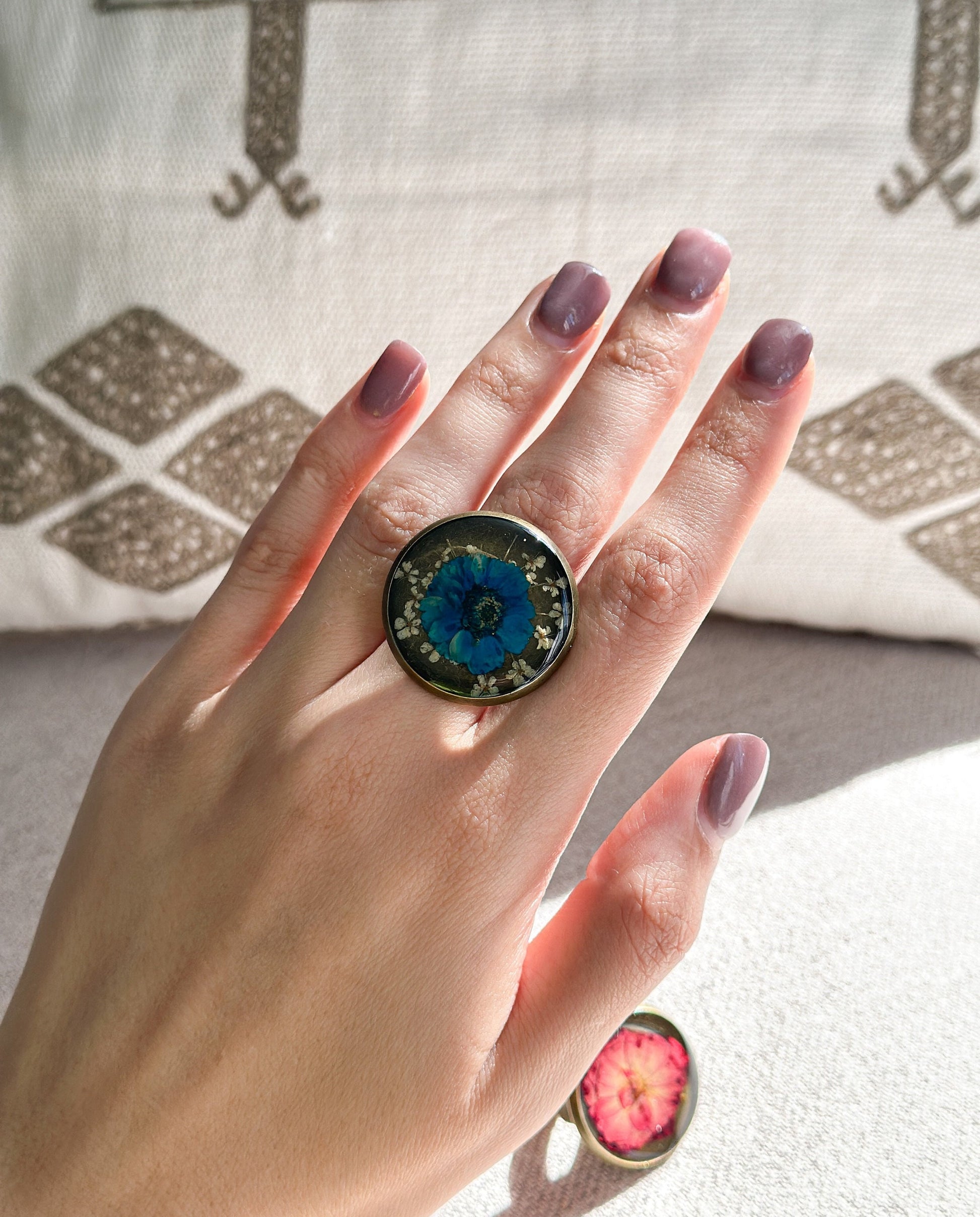 Real Pressed Flower Ring | Dainty Botanical Resin Jewelry | Nature Plant Ring | Vintage Ring Gift
