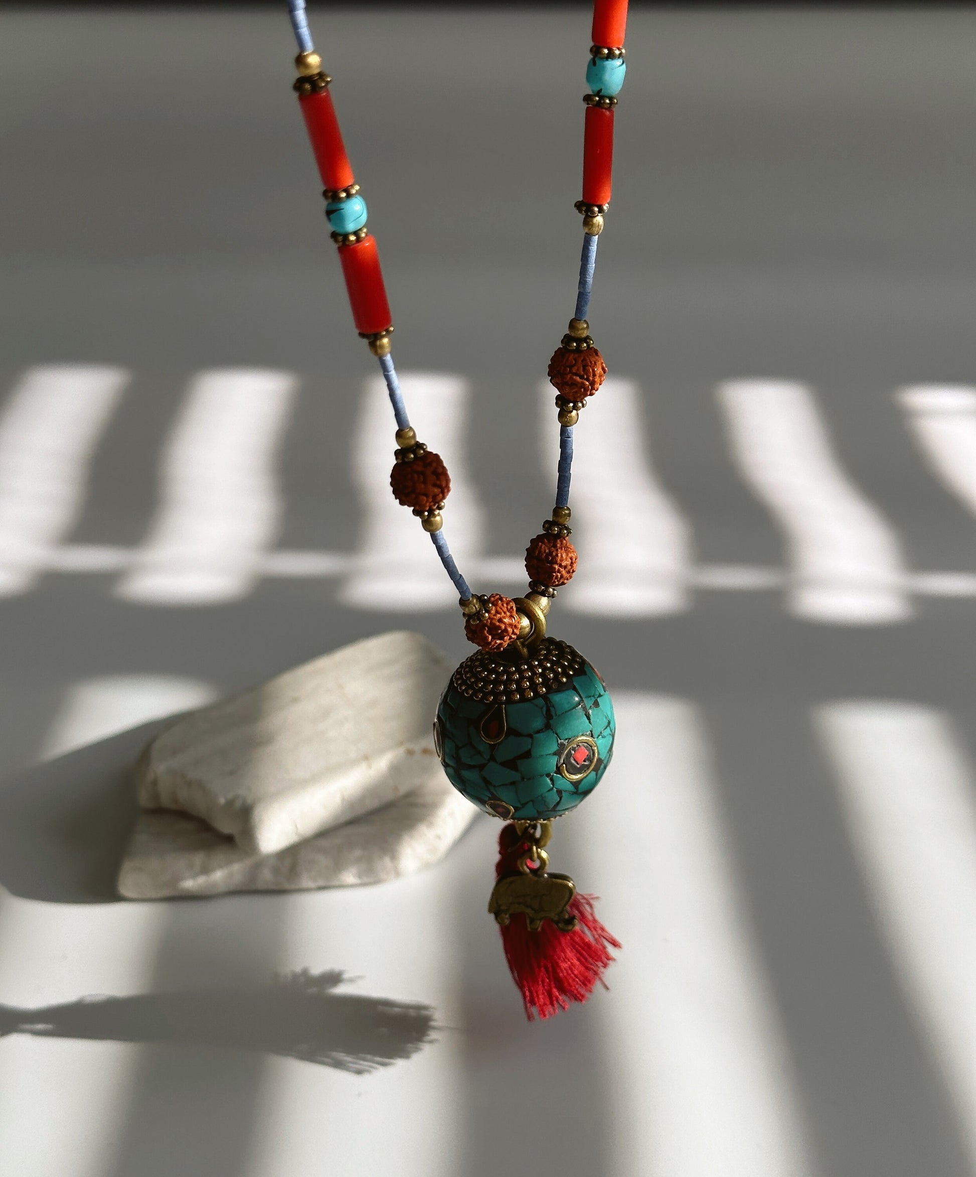 Its ethnicity and elegance comes from the traditional tribal ethnic design and boho minimalist string structure. It is designed and produced by local shaman artisans. Shamanism is known as a nature worship belief. Shamans bound their soul with nature. Our necklace is designed and is became alive with this bound.