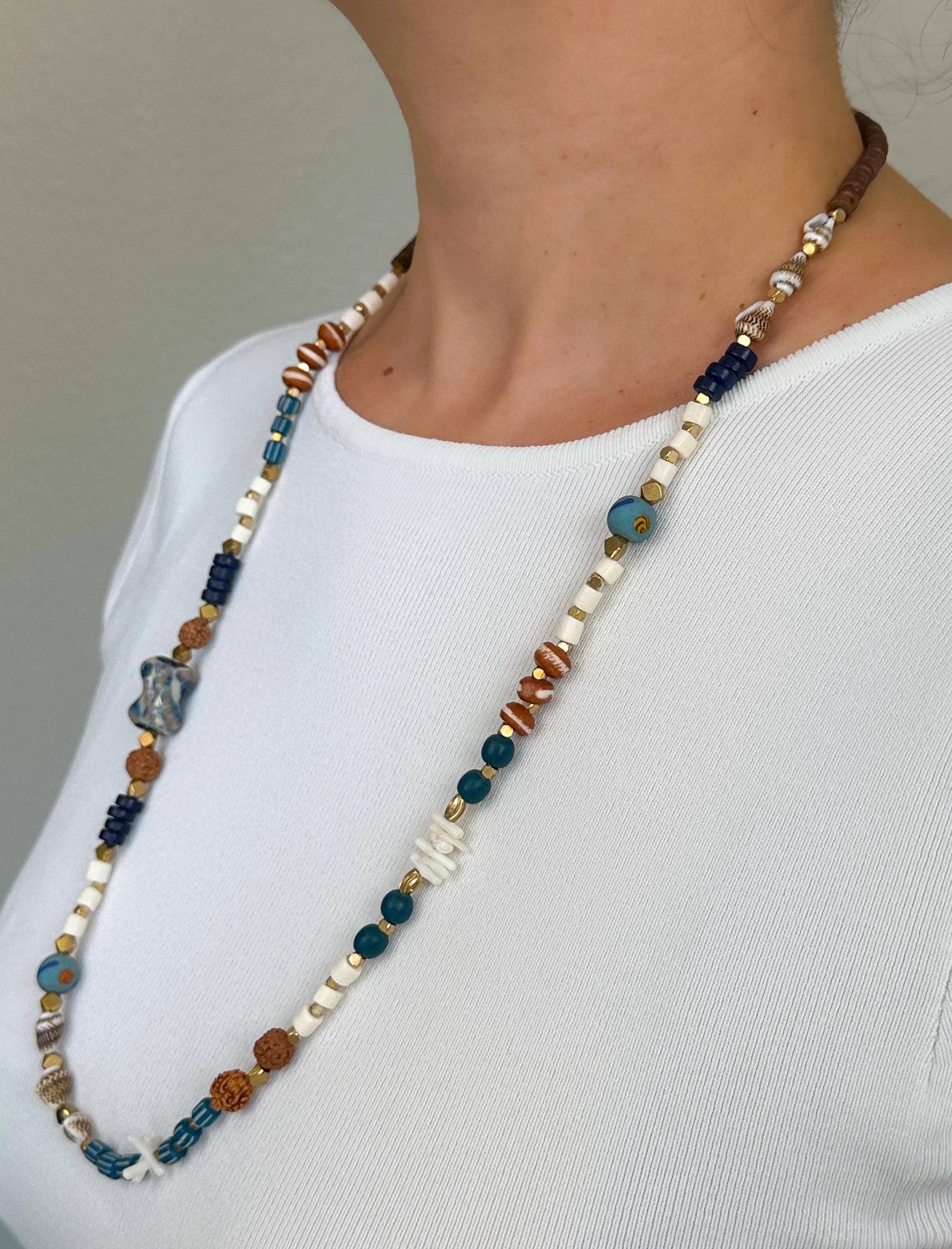 Its ethnicity and elegance comes from the traditional tribal ethnic design and boho minimalist string structure. It is designed and produced by local shaman artisans. Shamanism is known as a nature worship belief. Shamans bound their soul with nature. Our necklace is designed and is became alive with this bound.
