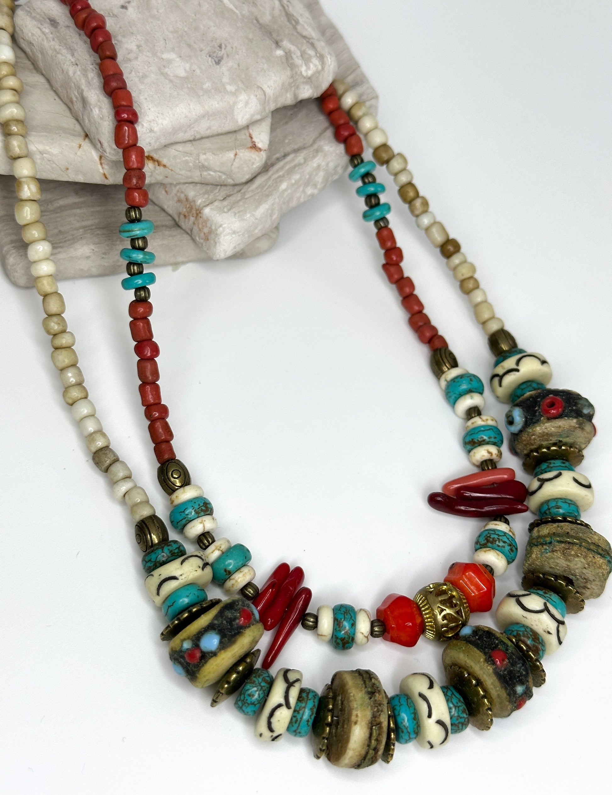 Two Layered Coral Nepali Necklace | Gift for Women Ethnic Jewelry | Ethnic Design Boho Necklace | Tibetan Jewelry