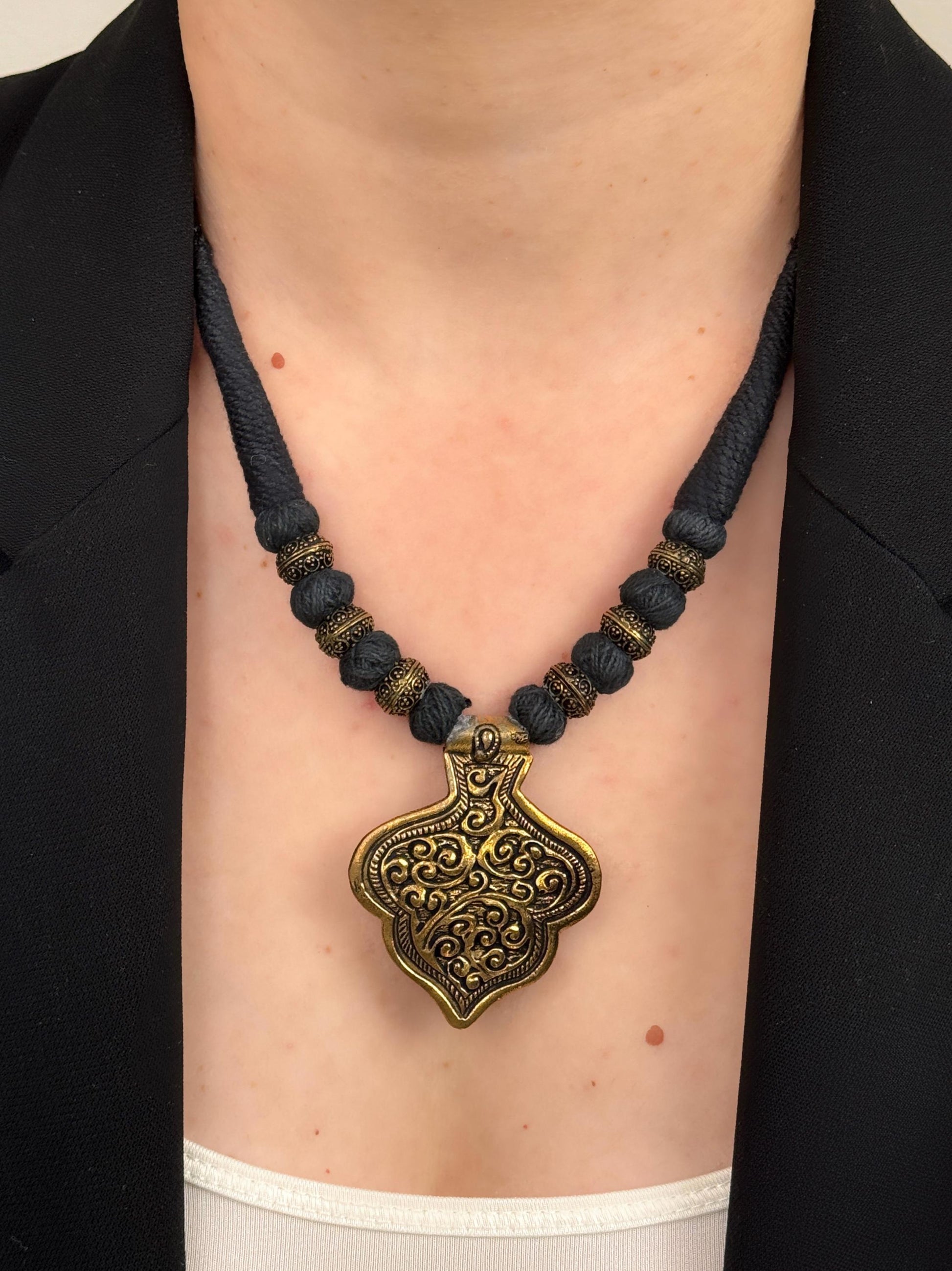 Vintage Dark Academia Necklace | Gift for Women Ethnic Jewelry | Black Gold Nepali Necklace | Ethnic Design Necklace | Tibetan Jewelry